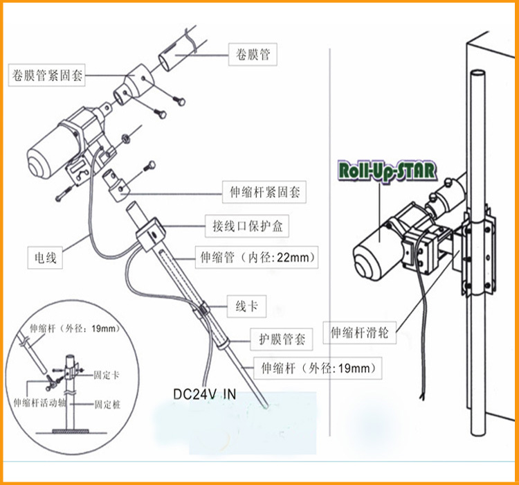 2:在安裝電動卷膜器時所配備的零部件一定要合適,支桿采用厚壁管,安裝時螺絲一定要擰牢固,以免造成負載時支撐變形。